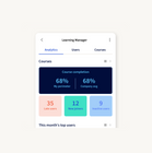 The analytics layer gives leaders full visibility into how learning is translating into capability. Dashboards track completion rates, scores, and engagement at every level of the organisation. Skill gap analysis identifies where development is needed before it shows up as a performance problem. Feedback collection closes the loop, allowing content to be continuously refined based on what's working in the field.